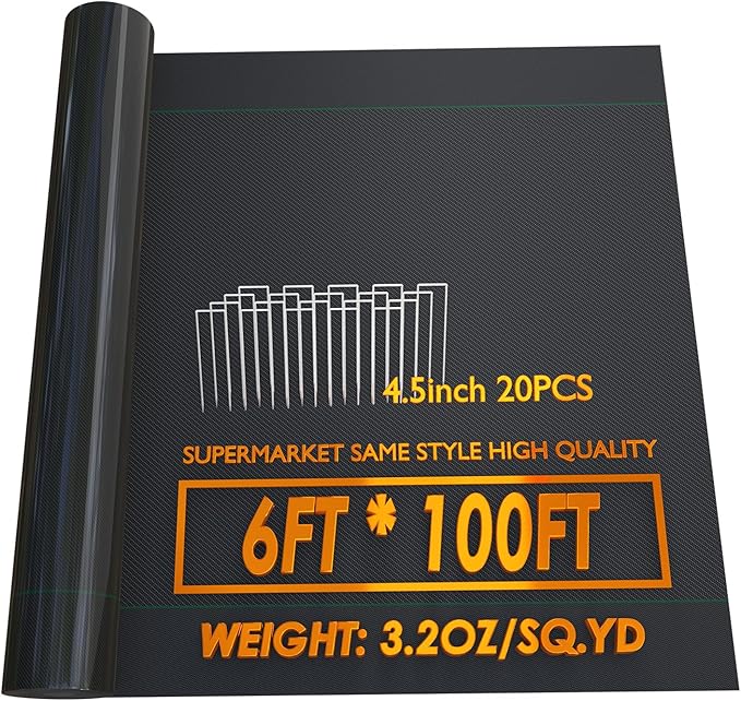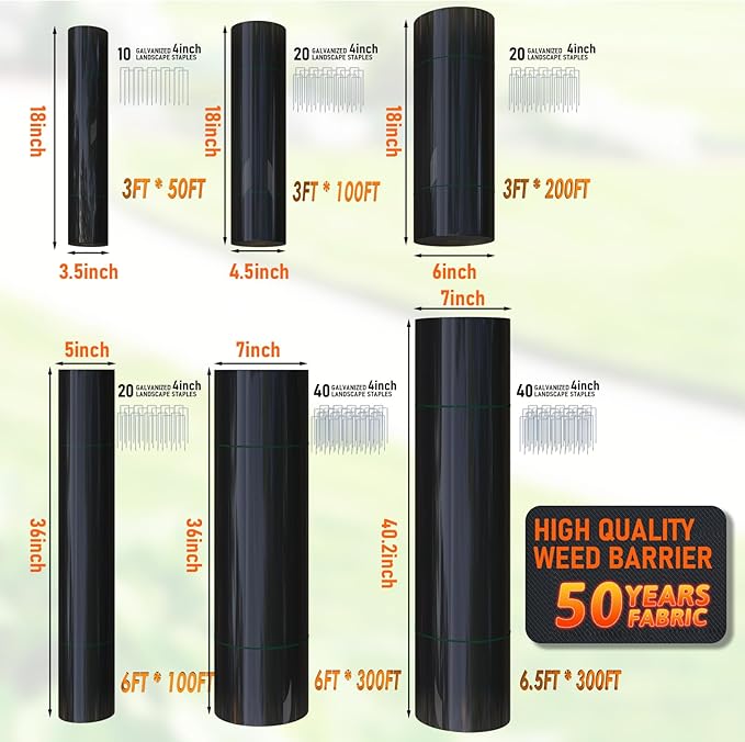 6 Size Weed Barrier Landscape Fabric Heavy Duty Gardening Weed Control Mat,Woven Weed Cloth Geotextile Fabric for Landscaping Driveway Farm Greenhouse (6x100FT)