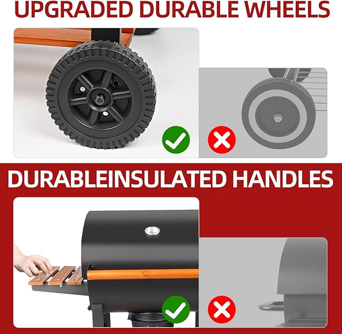 - CONVENIENT CHARCOAL ADDITION: There is a small independently liftable grill on the barbeque grill for easy charcoal addition without interrupting the cooking process, ensuring a seamless and uninterrupted grilling experience