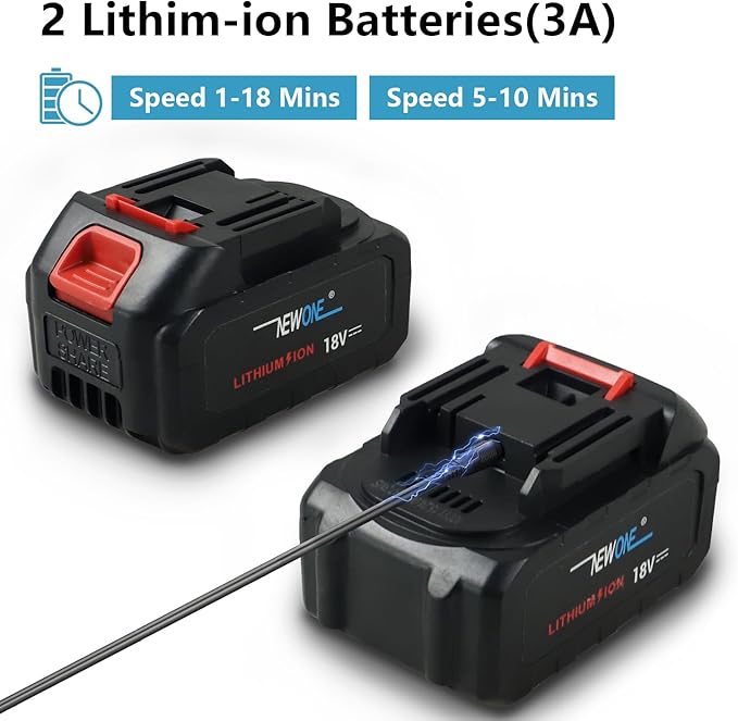 - Powerful Motor: NEWONE leaf blower adopts advanced axial flow turbofan, up to 820 CFM and 160 MPH, effectively improving air volume and wind power. It is equipped with a charger and 2 x 3.0 Ah batteries, which can be used alternately