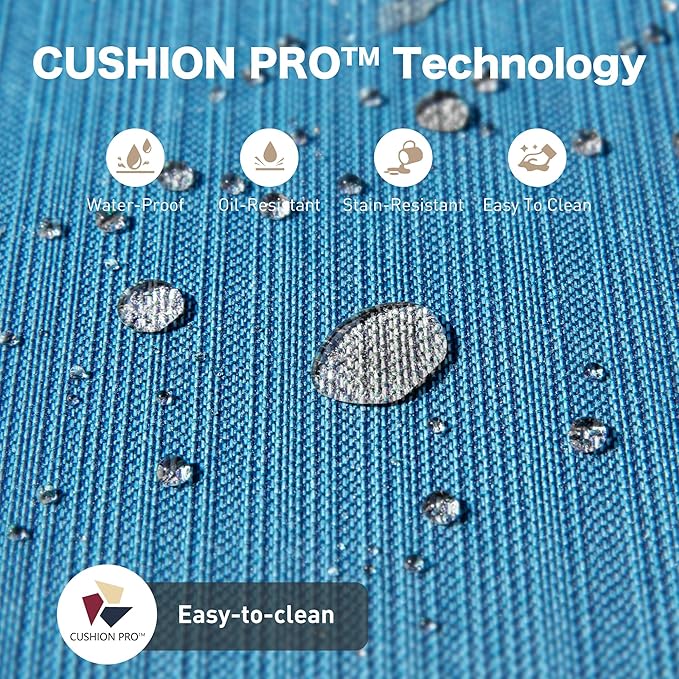 - 【ADVANCED CUSHION TECH】Experience the happiness of easy maintenance with the SUNSHINE VALLEY patio conversation set. The fabric of this patio furniture set is made with patent CUSHION PRO technology. It has excellent waterproof, oil-proof, and stain-resistant properties making the dirt easily wiped down. It can really meet your outdoor leisure needs