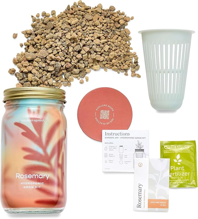 - Easy Hydroponic Growing: Grow fresh lavender and rosemary easily in your indoor herb garden using the self-watering hydroponic Garden Jar; Simply add water, drop in the included organic lavender or rosemary seeds, and place the jar in a sunny spot; Seeds sprout within 5 to 10 days and are ready to harvest in 2 to 3 months; No soil, no pests, no transplanting - just healthy, nutrient-rich herbs all year round; And with our Thrive Promise, we’ve got your back if your plant doesn’t flourish