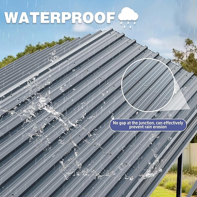 - Attractive Design: The galvanized steel roof adds a sleek, modern look to your outdoor space. Around the panel, we also attached protective tape to prevent you from being scratched by the sharp panel.