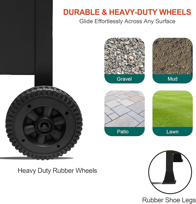 - 【Portable Design with Heavy-Duty Wheels】Move your grill effortlessly with built-in wheels—ideal for repositioning in your backyard, patio, or deck. Versatile for tailgates, small spaces, and outdoor gatherings