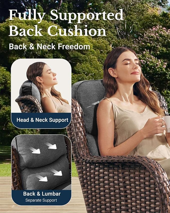- Smooth 360° Swivel & Glide: Enjoy smooth 360° rotation and gentle rocking on the swivel chairs, while the couch offers roomy comfort. Whether you're sipping tea at sunset, catching up with friends, or hosting a cozy gathering with elderly family members—ideal for sharing laughter, stories, and quiet moments together