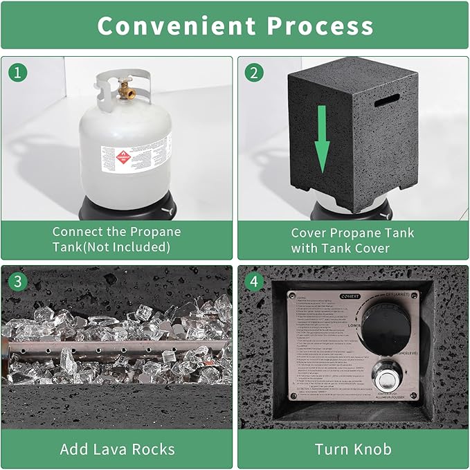 - Package & Service: Includings: Fire Table, Waterproof Cover. 1 year warranty: Any problems with our fire pit table, please don't hesitate to contact us by email, you will get a professional solutions within 24 hours.