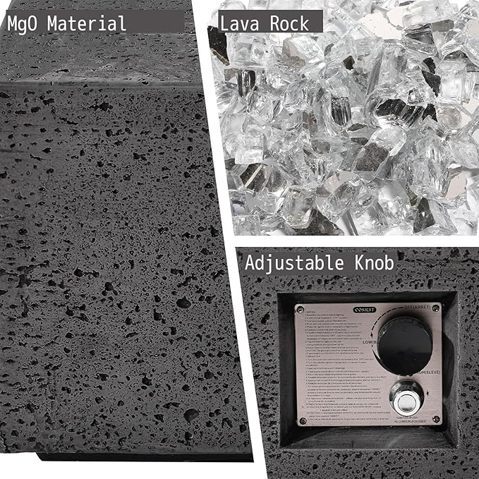 - Auto Ignition System: Enjoy the warmth of the flame with ease by twisting the knob for automatic ignition. The knob has three-position adjustment to adjust the flame for different needs. The internal burners are stainless steel, not easily damaged and simple to maintain. Together with the included lava rocks, it becomes the best decoration in the yard.