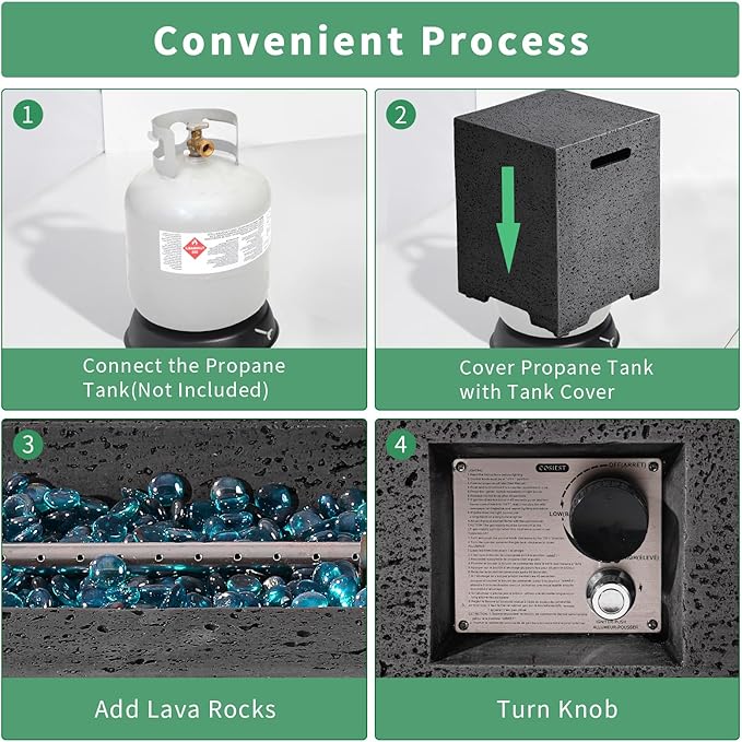 - Package & Service: Includings: Fire Table, Waterproof Cover. 1 year warranty: Any problems with our fire pit table, please don't hesitate to contact us by email, you will get a professional solutions within 24 hours.