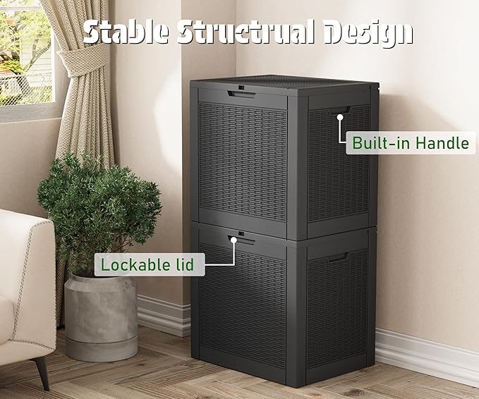 - 🌵【PORTABLE & SECURE】Esmlada outdoor storage bin with hidden double side handles, the storage box is easy to move around at any time; additional locking holes are designed to provide extra security for stored personal belongings.