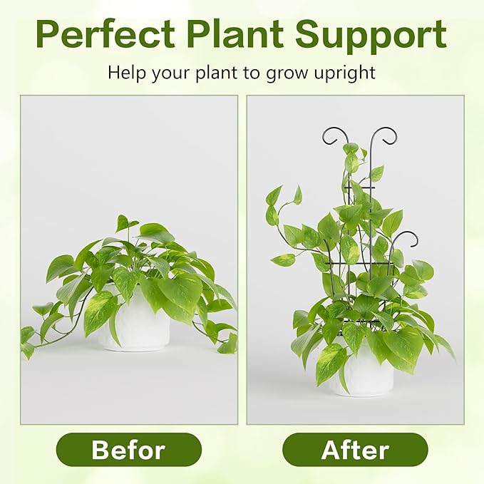 - Large Design: Every one standing at 23.6 inches tall, these trellises provide excellent support for climbing plants to allowing potted plants to grow upwards and help them get more sunlight to prevent sagging.