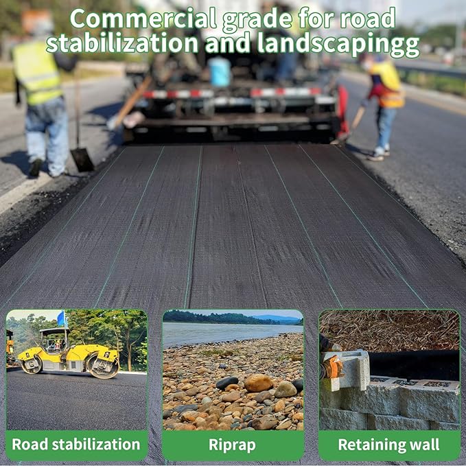 - Wide Application: Weed barrier landscape fabric heavy duty is widely used in Driveway Fabric, gardens, greenhouses, lawns, planting areas, gravel paths, sidewalks, construction projects and more. Great road stabilization & weed barrier