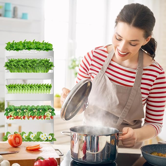 - 【Separate Planting】Crownow 5 tier hydroponic growing system(the top layer has no grow light) can grow different plants in every layers,make you easily manage your indoor gardening system