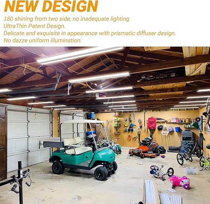 - ✔ LINKABLE - Linkable design can make it easy to install individually or continuously. You can link multiple lights (up to 20 lights) one by one in line together. Easy set up with these 4ft led garage lights. Just attach it your wall or ceiling, connect the wiring as instructed with included mounting hardware, besides you do not have to take any lenses off to install these fixtures. They are a snap to assemble and disassemble.