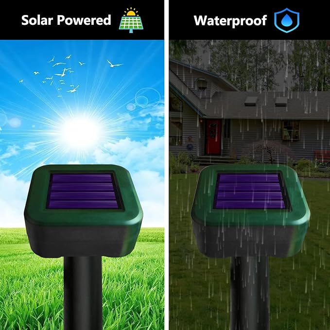 - 【Safe for Humans and Pets】This mole repellant, releases 3-4 seconds of gentle low frequency waves every 20 seconds, penetrating deep into the ground and effectively repelling moles. Adopting a humane approach, it effectively prevents moles from destroying your yard, fully protects your lawn, vegetable garden, and flowers, and ensures that your family's small yard is full of life without destroying the ecology.