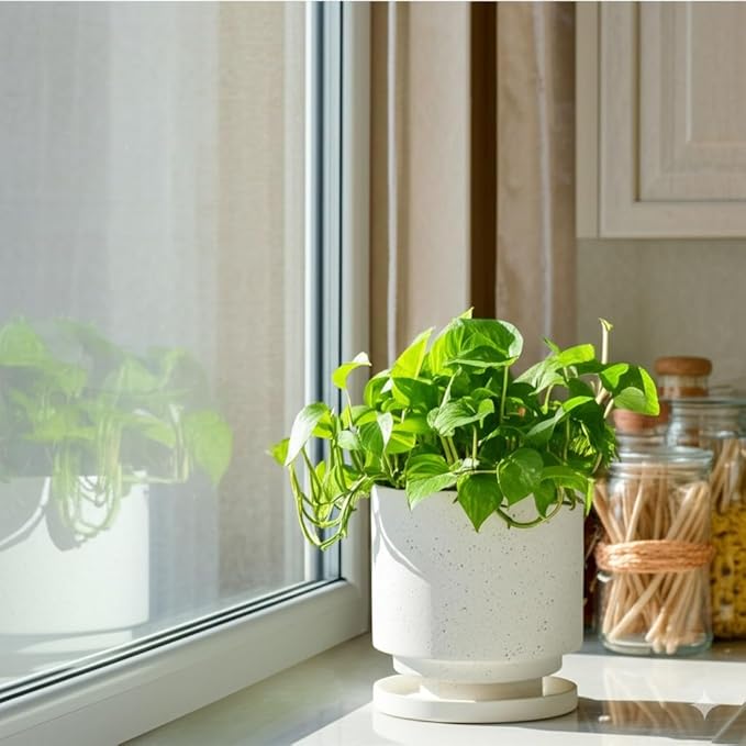 - MODERN DESIGN: The ceramic planter with cylindrical shape and matching saucer, perfect for contemporary home decor.The stepped bottom design enhances the overall design aesthetic of the planter, making it looks unique and standing out among others.
