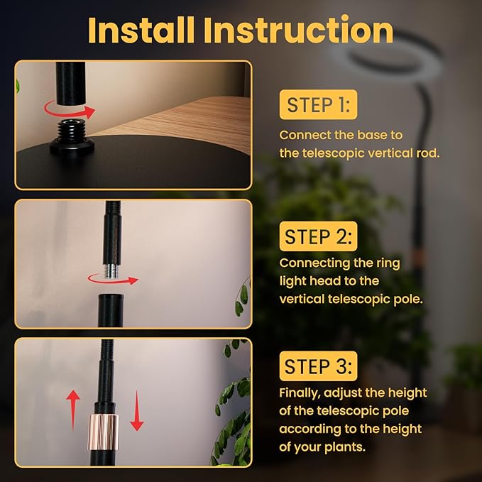 - This plant grow light is equipped with a metal base to ensure stable standing. The sponge pad at the bottom can prevent the lamp from tipping over and scratching the table. Easy to install, practical in design, it is the perfect solution for indoor desktop plants.