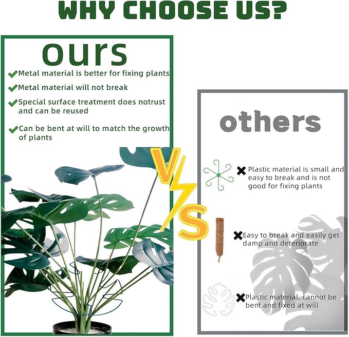 - Versatile Application: Ideal for various climbing plants like Monstera, this support system allows for customizable positioning.