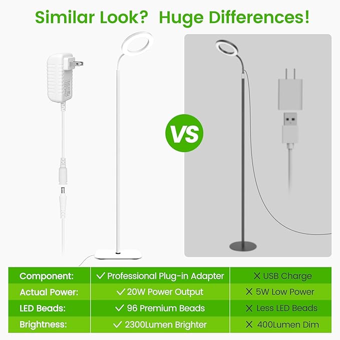 - 96 Premium LED Bulbs with Strong Power Output: Our upgraded tall grow lights are equipped with up to 96 high-quality bright LED lamp beads; unlike other USB plugs, we adopting a 12V adapter, providing stronger power output, more stable current output for a stronger light, accelerating photosynthesis, and effectively promoting the growth of your plants