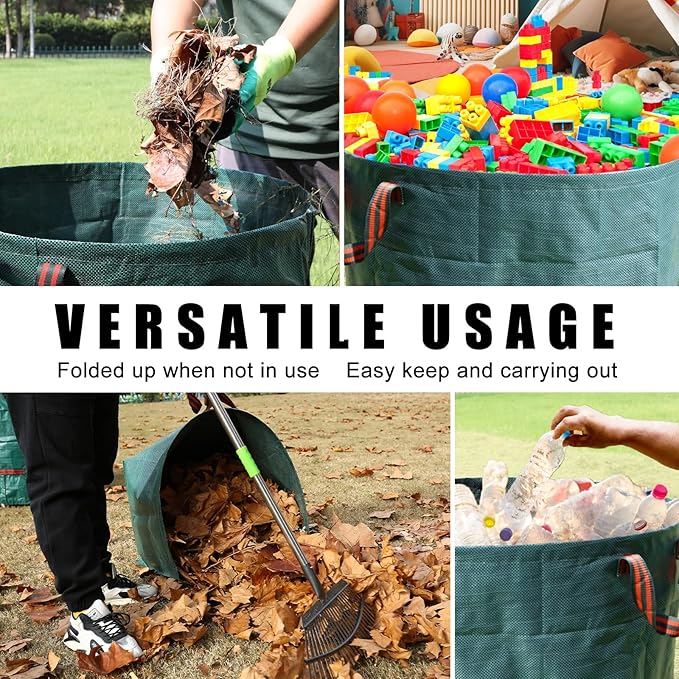 - Versatile Trash Bags: Joyhalo's leaf bags can be used in the backyard for collecting trash, leaves, and weeds, or for containing government-issued compost; They can also be used in the house for storing dirty clothes, toys, waste cardboard boxes, and more; With their large capacity and collapsibility, they can even serve as a trash can for camping.