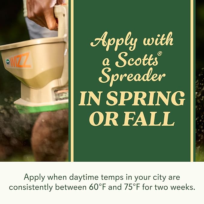 - Apply using a Scotts spreader and lightly water daily for two weeks; one 2 lb. bag covers 1,000 sq. ft.