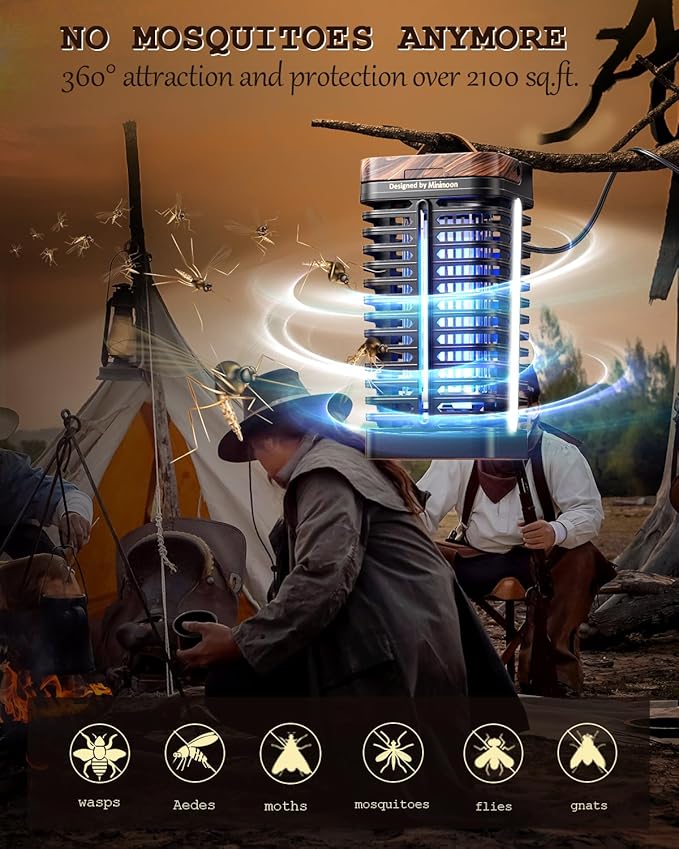Minimoon Bug Zapper Outdoor with Dual LED Lights, 15W Mosquito Zapper 4200V Electric Fly Trap, Western Theme, IPX4 Waterproof, 5.9 Ft Cord, Fly Zapper for Backyard, Patio, Indoor