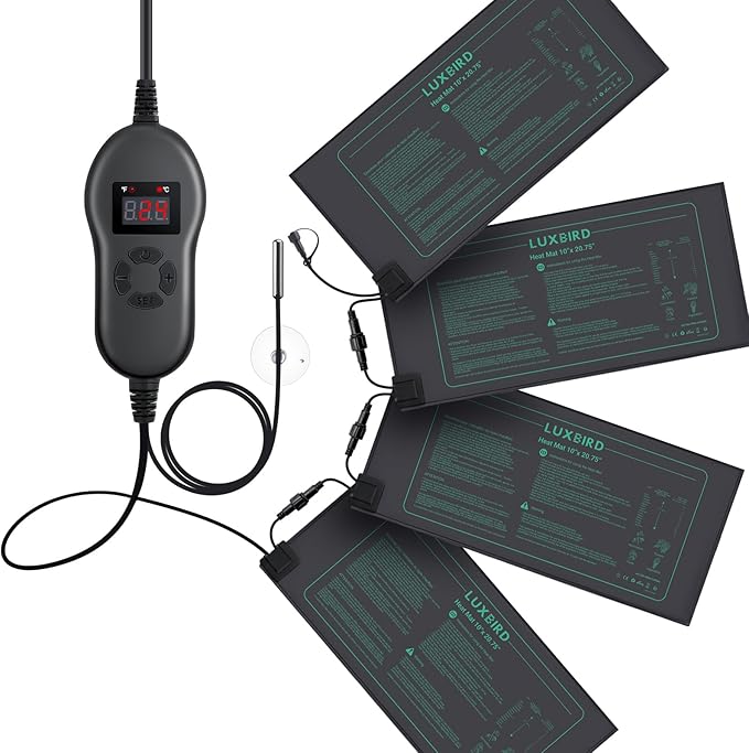 LUXBIRD Daisy Chain Plant Heating Mat with Thermostat,Timing Function Countdown, 10"x 20.75" (4 Pack)
