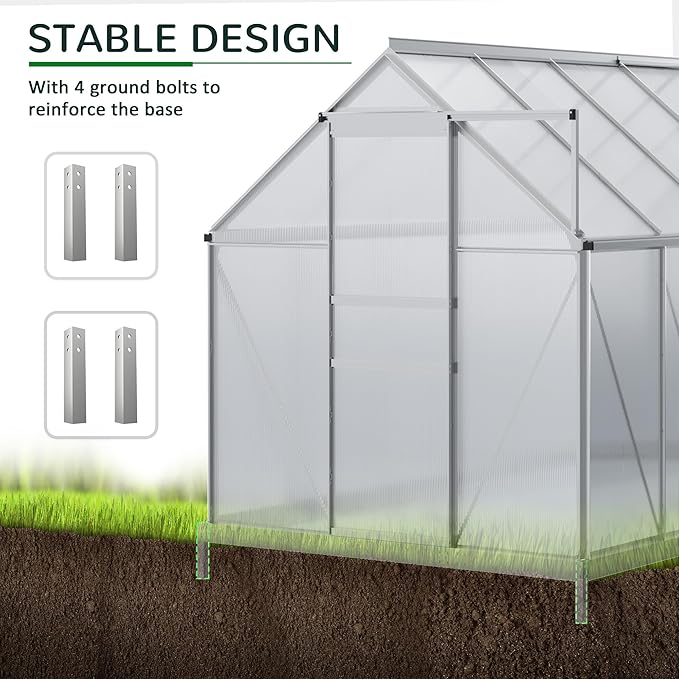 Outsunny 6' x 12' x 6.5' Polycarbonate Greenhouse with Adjustable Roof Vent, Walk-in Heavy Duty Green House Kit with Aluminum Frame, Sliding Door and Rain Gutter for Winter, Silver