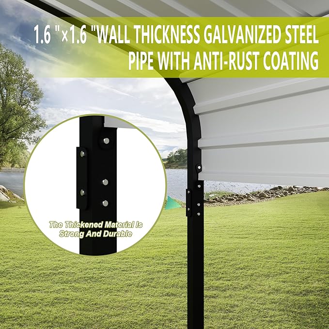 - 【SECURE AND STABLE CARPORT】To ensure stability, our metal garage comes with 10 anchor kits,which makes it suitable for installation on a variety of surfaces such as grass, asphalt and concrete.Please note this carport use on leveled surfaces.
