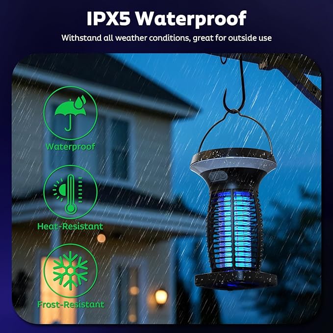 - EPA Registered, Safe for Children & Pets: Our electric bug zapper uses safe, physical mosquito control with no harmful chemicals, sprays, or odors. The durable ABS plastic housing features a protective mesh with a 0.25β safety gap around the high voltage electric grid, preventing accidental contact by children or pets. With a convenient hanging hook, you can place the fly trap anywhere for effective pest control, providing peace of mind while protecting your family, patio, and home from pests