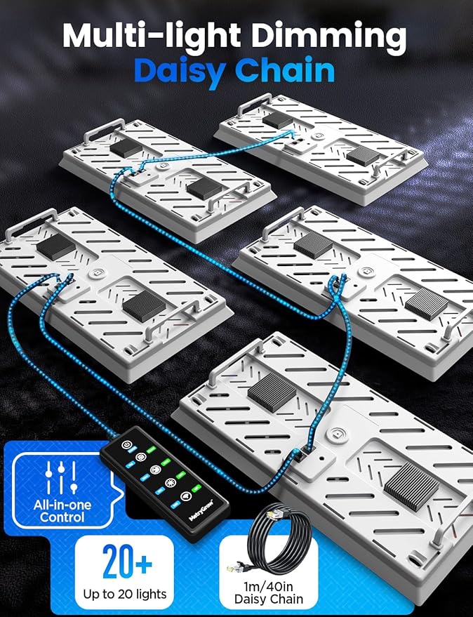 - 【Powerful and Versatile Connectivity】: Designed for maximum convenience, our grow light system supports seamless daisy-chaining of up to 20 lights, allowing you to illuminate large indoor gardens with ease. Whether you're nurturing a small seedling tray or an extensive indoor plant collection, the synchronized setup ensures uniform lighting across all connected units.