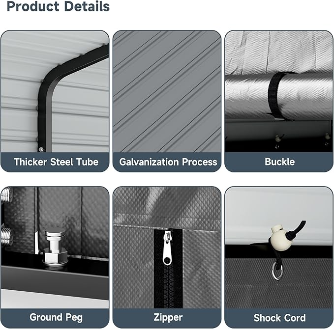 - Sturdy Structure: Constructed with a galvanized steel roof and a powder-coated steel frame, it provides excellent rust resistance and reliable protection against withstand extreme weather conditions such as strong winds, heavy rain, and snow.