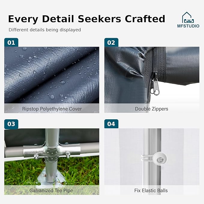 - Extra-thick Waterproof Protective Fabric: Garage shed all-season protective tarp made of extra-thick fabric material, ear-proof, waterproof and anti-UV, capable of withstanding wind, rain, snow, and sun, Your items will be intact and protected all year round