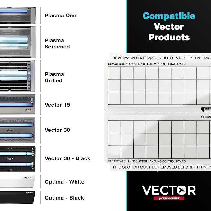 - GLUE BOARD REFILLS FOR UV TRAP: This set includes 12 replacement glue boards with perforations to create 24 glue boards compatible with Vector Fly Light Traps, including the Vector Classic, Vector Plasma Grill, Vector Plasma Screened, Vector Plasma One, Vector 15, Vector 30, and Vector Optima. The Vector Light Traps are sold separately.