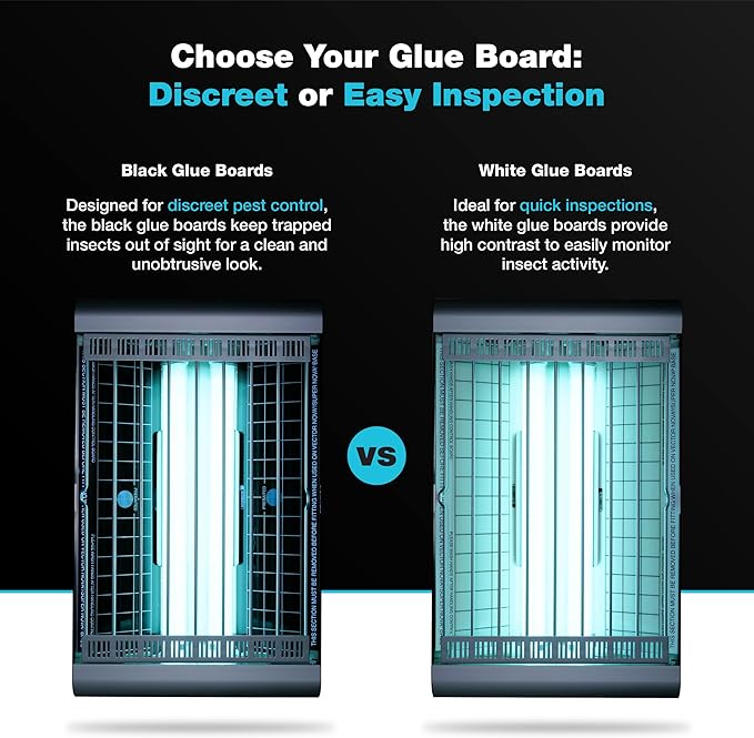 - VECTOR TRAP COMPATIBLE: The Insect Vector Traps are a remarkably discreet alternative to messy bug zappers, perfect for kitchens and dining areas. The fly killer traps are made with airplane-grade aluminum and an industrial-strength design for increased durability. Use the easy-to-change replacement glue boards to trap flies and pests with this indoor fly trap for the home.