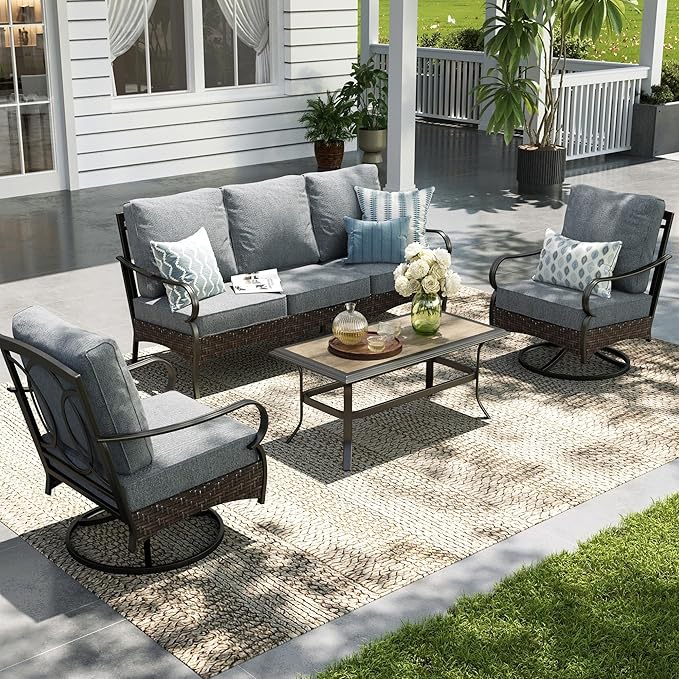 - Ultimate Comfort with Thick Cushions: Featuring 5.5-inch thick cushions, this conversation patio furniture Set ensures maximum comfort and support. The extra-wide, deep seats and high backrest offer a relaxed, cozy experience, perfect for lounging or engaging in long conversations. Enjoy outdoor comfort like never before with this stylish and comfortable set.