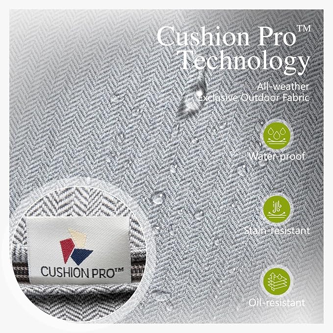 - Weather-Resistant Cushion Pro Fabric : Sophia & William patio sofa cushions are crafted with exclusive Cushion Pro outdoor fabric, designed specifically for outdoor use. This fabric offers superior water resistance, oil-repellent, and stain-resistant properties, making it easy to clean with just a sponge and cleaning spray. The velcro design ensures the cushions stay securely in place, preventing slipping or sliding for a comfortable, hassle-free seating experience.