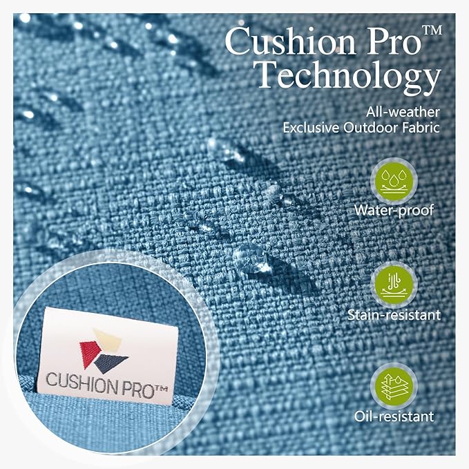 - Weather-Resistant Cushion Pro Fabric : Sophia & William patio sofa cushions are crafted with exclusive Cushion Pro outdoor fabric, designed specifically for outdoor use. This fabric offers superior water resistance, oil-repellent, and stain-resistant properties, making it easy to clean with just a sponge and cleaning spray. The velcro design ensures the cushions stay securely in place, preventing slipping or sliding for a comfortable, hassle-free seating experience.