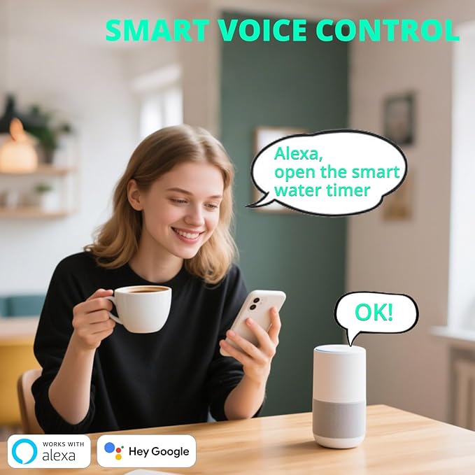 - Voice Control – WiFi hose timer is compatible with Alexa and Google Assistant. You can control it with simple voice commands