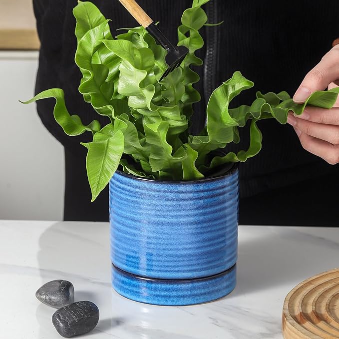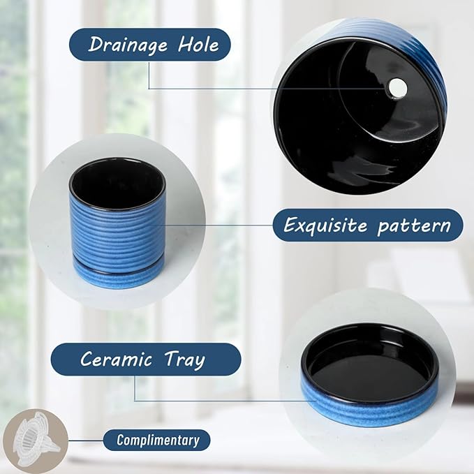 - Stylish and Versatile Design: The mini Planter feature a timeless blue ceramic finish, blending seamlessly with any home or office decor. Their compact 4-inch size makes them perfect for windowsills, desks, or shelves, adding a touch of greenery to small spaces