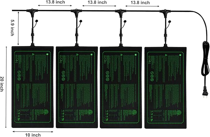 - Consistent & Even Heat: This includes 4 pack heat mat, designed with a daisy chain feature, enabling them to connect and work together and also can work alone.When 4 units are connected in series and activated at the same time simultaneously, they provide consistent and even heat distribution to multiple plants