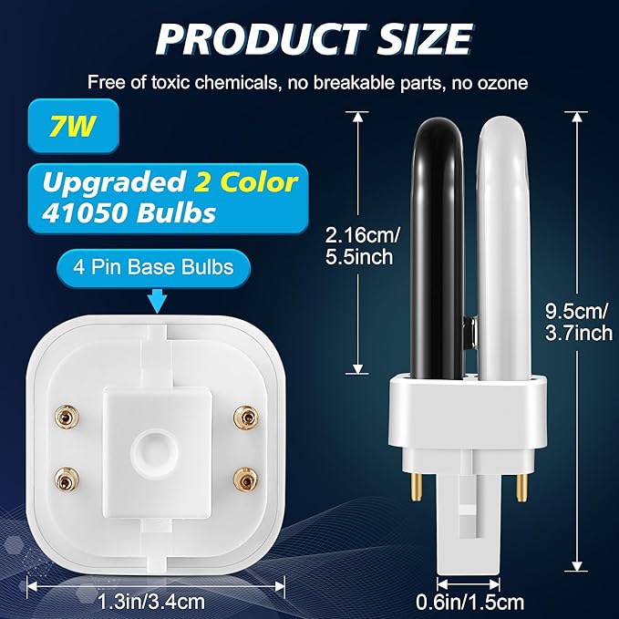 - Upgraded 2 Color 41050 Replacement Bulbs: the 2 color bulb is more extensive and practical; The white tube emit blue violet light which can effectively attract all kinds of mosquitoes; The ultraviolet light emitted by the black tube is effective in attracting flies, moths and other insects
