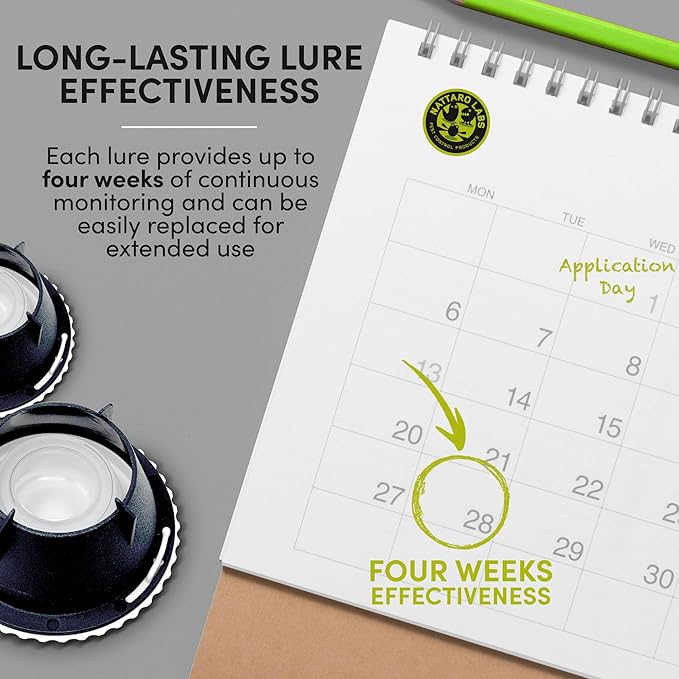- LONG-LASTING LURE EFFECTIVENESS: Each lure provides up to four weeks of continuous monitoring and can be easily replaced for extended use.