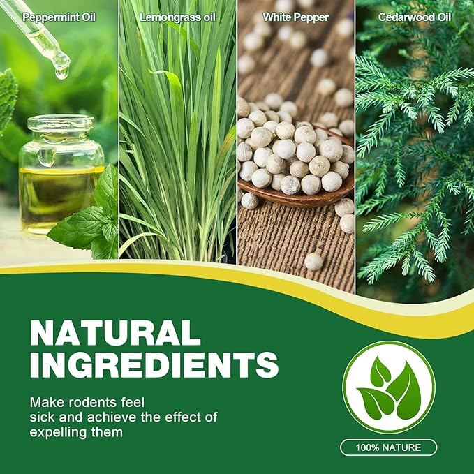 - FAMILY & PETS SAFETY - The natural ingredients of the mice repellent deter rodents effectively, making them safe for both people and pets. Natural mice repellent are not just a temporary fix but a long-term solution to your rodent woes. These mouse repellent work by targeting the rodents' senses, disrupting their natural behaviors, and making your space unappealing to them.