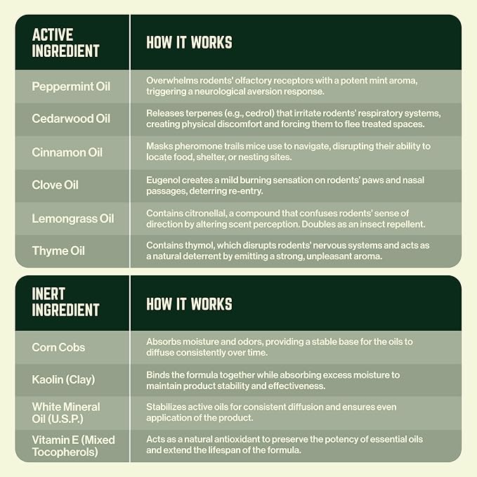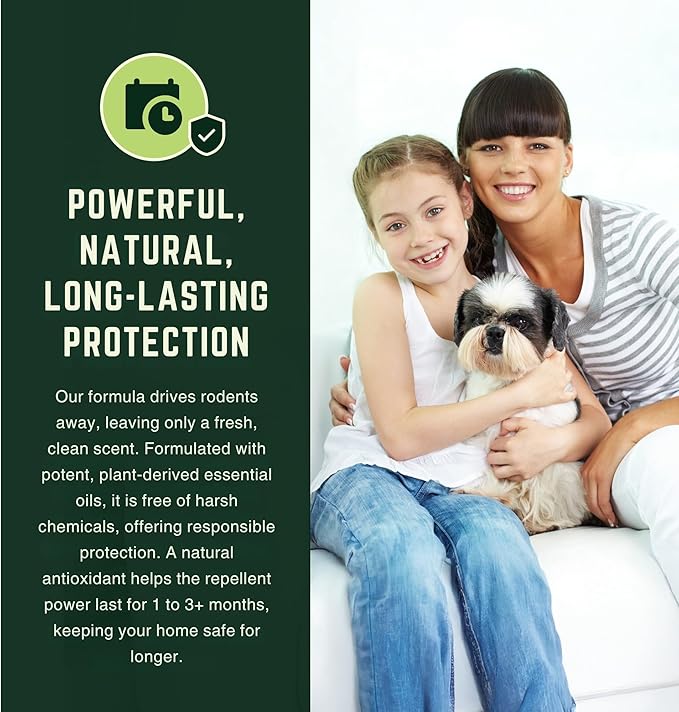 - Long-Lasting Protection: Our unique Vitamin E formula extends repellent power for 30 to 90+ days. An effective mice repellent outdoor and rodent repellent outdoor, it keeps your spaces protected while saving you time and money.
