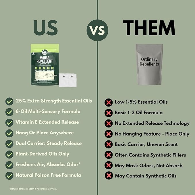 - Poison-Free Formula for Your Home: Get mouse deterrents that work without the harsh chemicals. Made with potent, plant-derived essential oils, this is a smarter choice for use in your home.