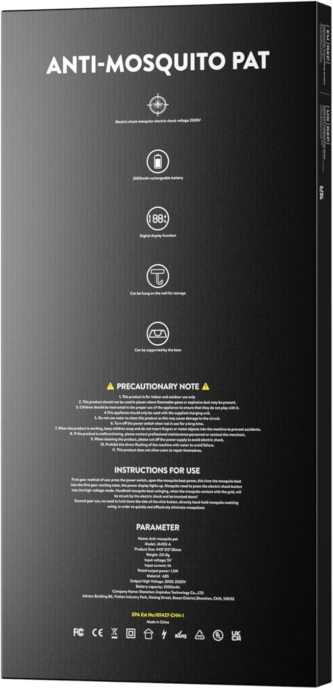 - 2000mAh Rechargeable Battery - Equipped with a high-capacity 2000mAh rechargeable battery, this bug zapper Racket provides extended usage on a single charge. Say goodbye to frequent battery replacements and save money on buying batteries