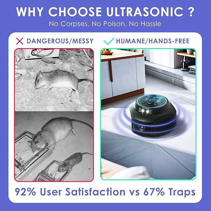 - [βοΈ 2,400 SQ FT Perimeter Shield]: Total plug repellent ultrasonic indoor coverage for kitchens/attics/garages/RVs - corner placement creates barrier-free protection in minutes.