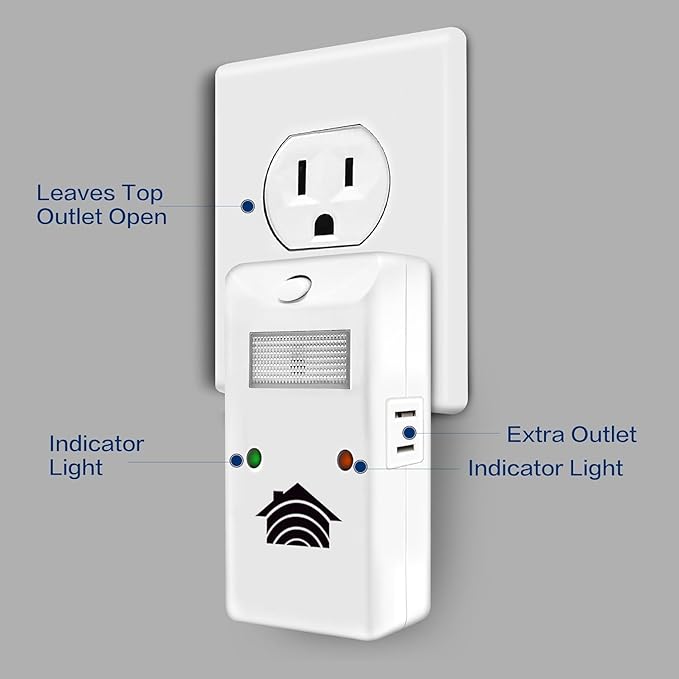 - 🐶 SAFE FOR KIDS AND PETS: Unlike sprays, traps, and other insect and rodent deterrents, this electromagnetic plug-in pest repellent is completely safe for kids, cats, and dogs. Our roach repeller for indoor use is virtually unnoticeable and easy to install, you simply plug-in to any outlet in your home. Turn your home into a pest-repelling force field with this safe, noise-free, family-friendly insect repellent device.