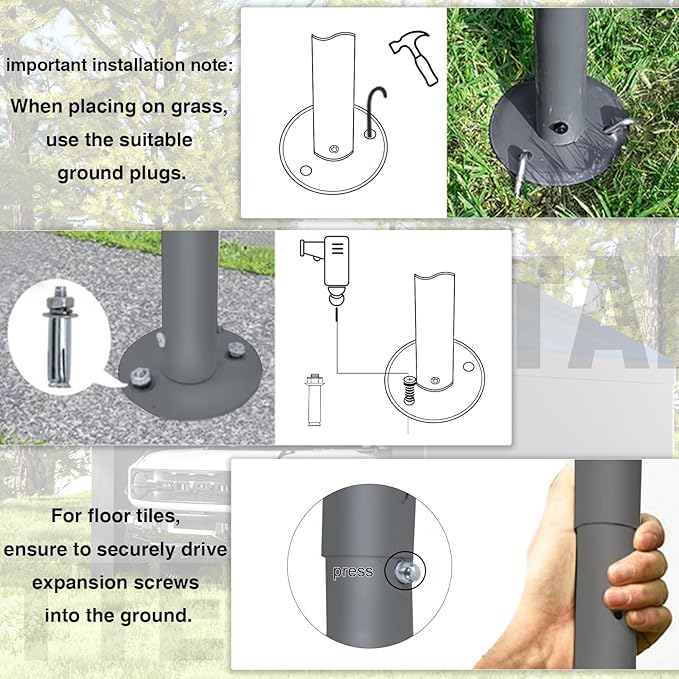 - 【REINFORCED STEEL FRAME】: Our car tent frame is made of heavy-duty steel pipe with high strength, which can make the carport stable and not fall down in gusty winds. The steel pipe surface is treated with galvanized powder coating, which is rust-proof, crack-proof and corrosion-resistant, so that the structure of the carport canopy will remain stable for a long time, and the items inside the carport shade will be protected in all aspects.