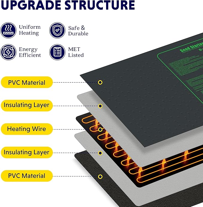 - Durable and Safe: With internal insulated wiring for safety, this heat mat has a sturdy multi-layer construction. It is water-resistant for easy cleaning but should not be submerged in water