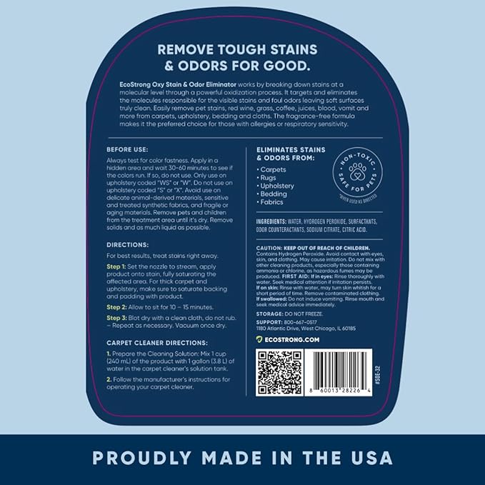 - Advanced Oxygen-Based Cleaning Technology: Our proprietary oxygen-powered formula targets stains and odors at their source, breaking them down on contact for quicker, more effective cleaning. Perfect for busy households, it delivers professional-level results every time.